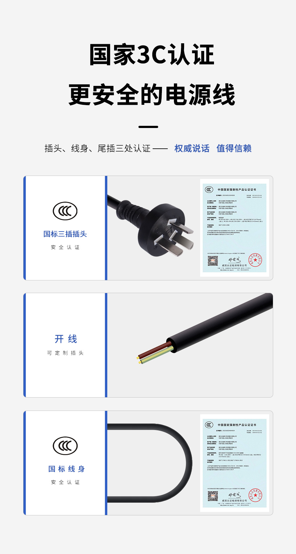 CCC 国标 3-PIN 插头 开线 电源线组 1.8米