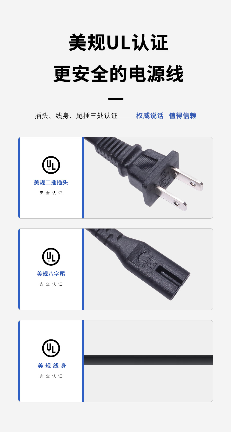 UL 2-Pin 美规插头 八字尾 电源线组 1.2米
