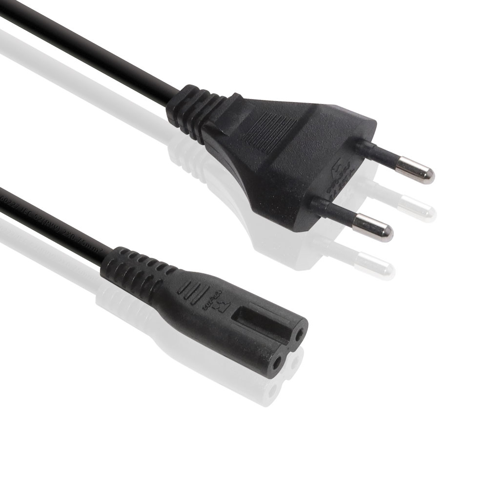 VDE 欧规 2-Pin 插头 八字尾 电源线组 1.2米