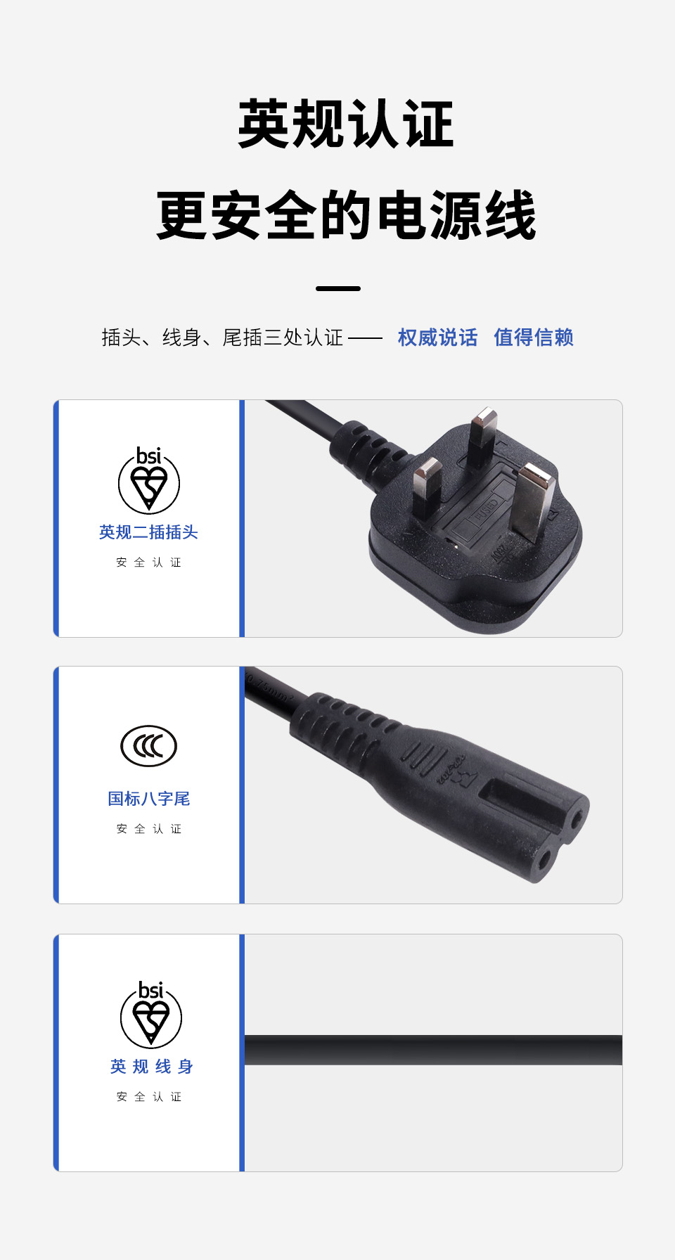 BS 3-Pin 英规插头 八字尾 电源线组 1.2米