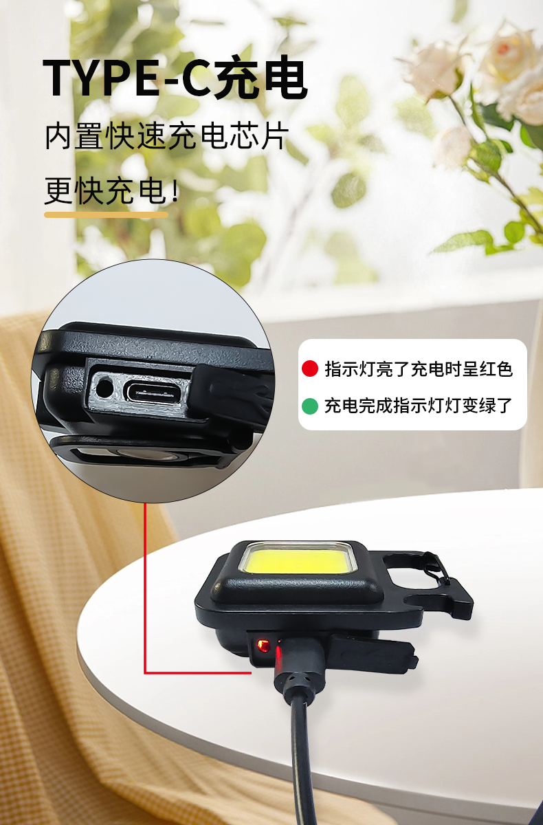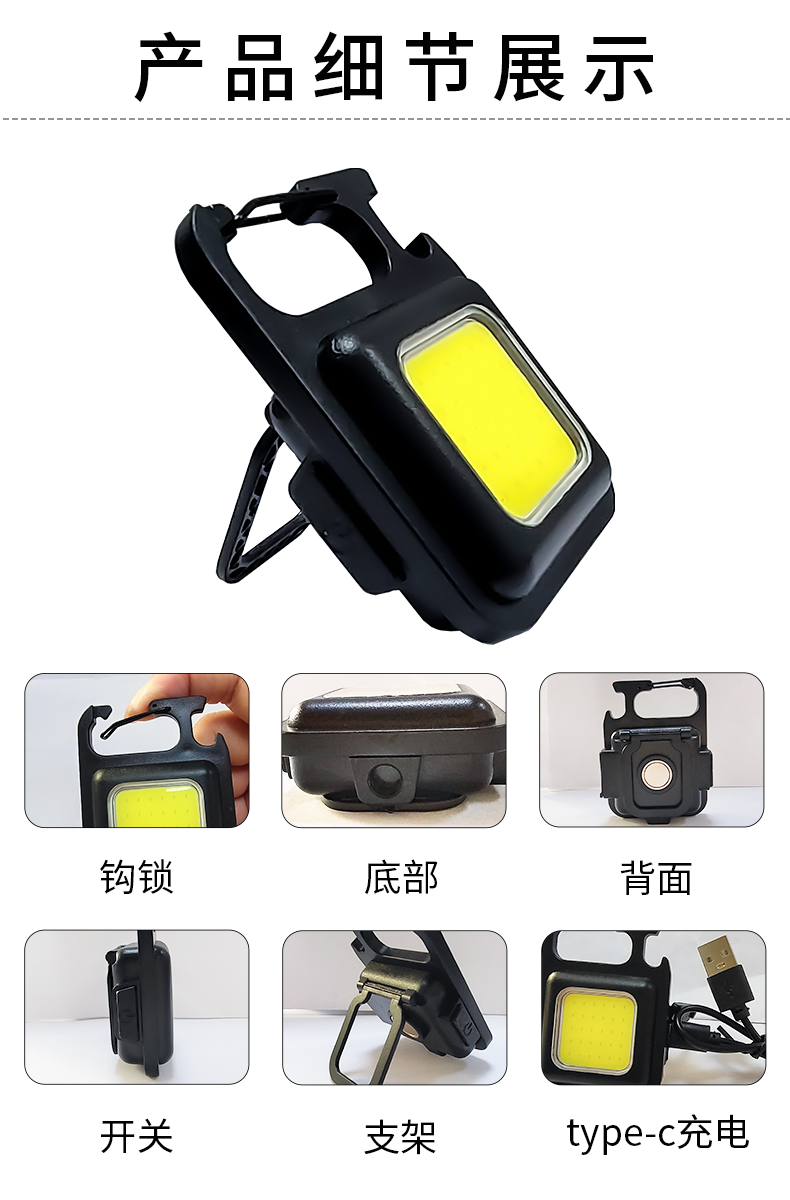 强光迷你小手电筒钥匙扣灯户外夜跑骑行照明灯宿舍家用强磁工作灯