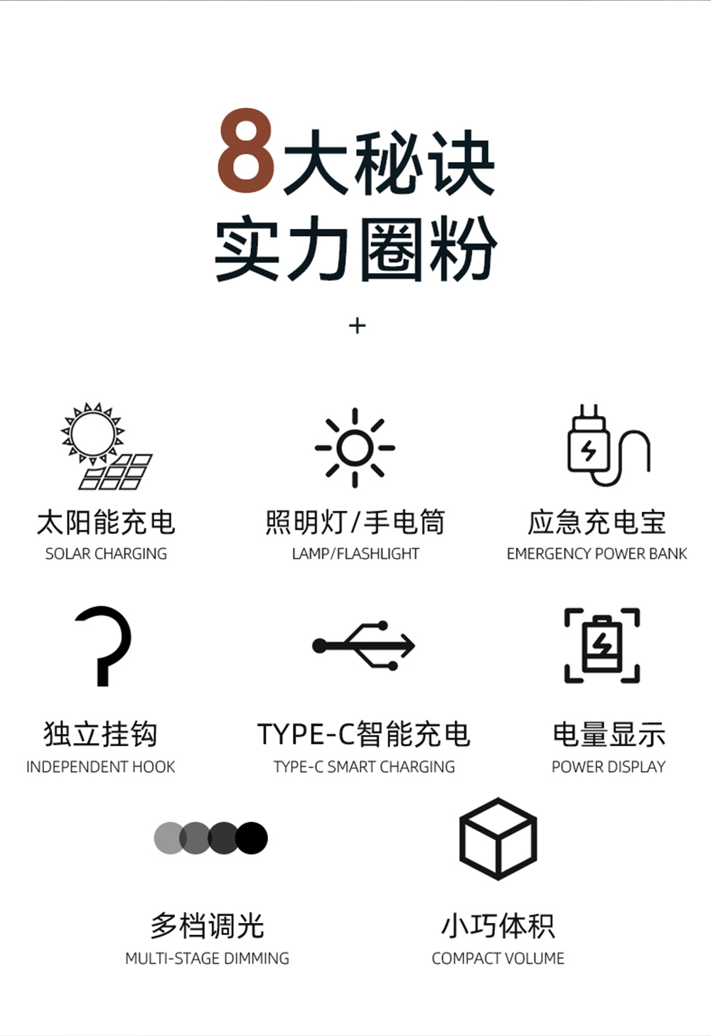 多功能野营户外照明灯马灯超长续航野营灯氛围灯帐篷灯太阳能充电