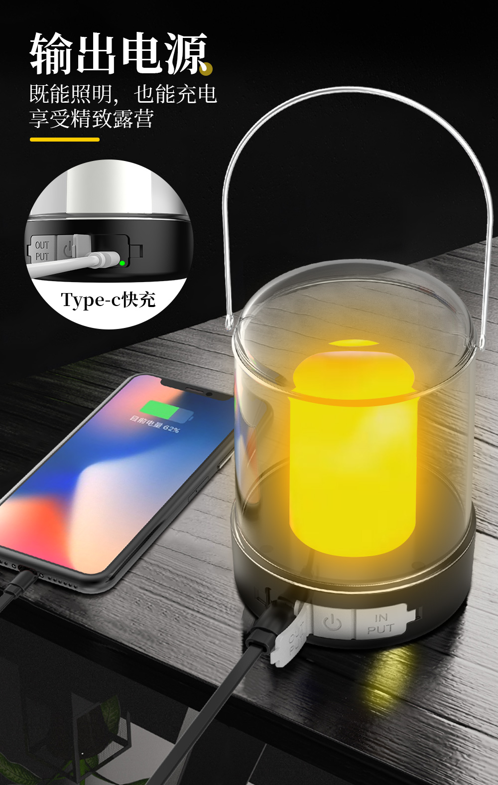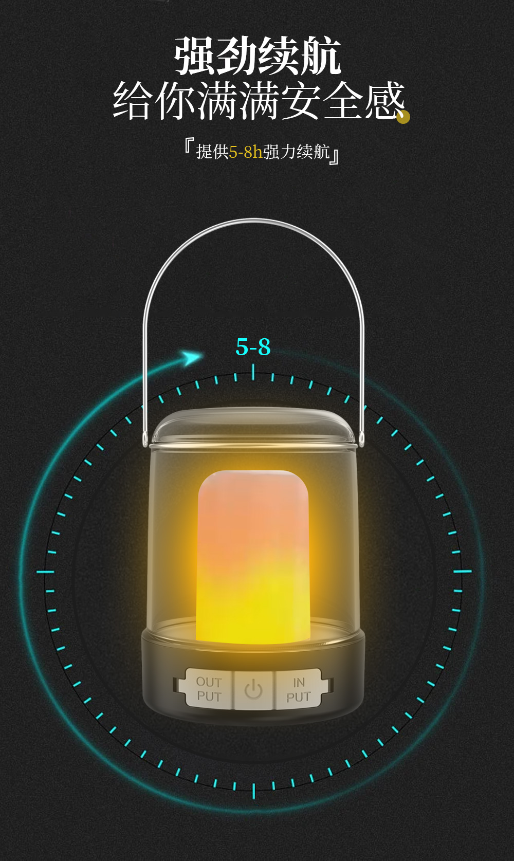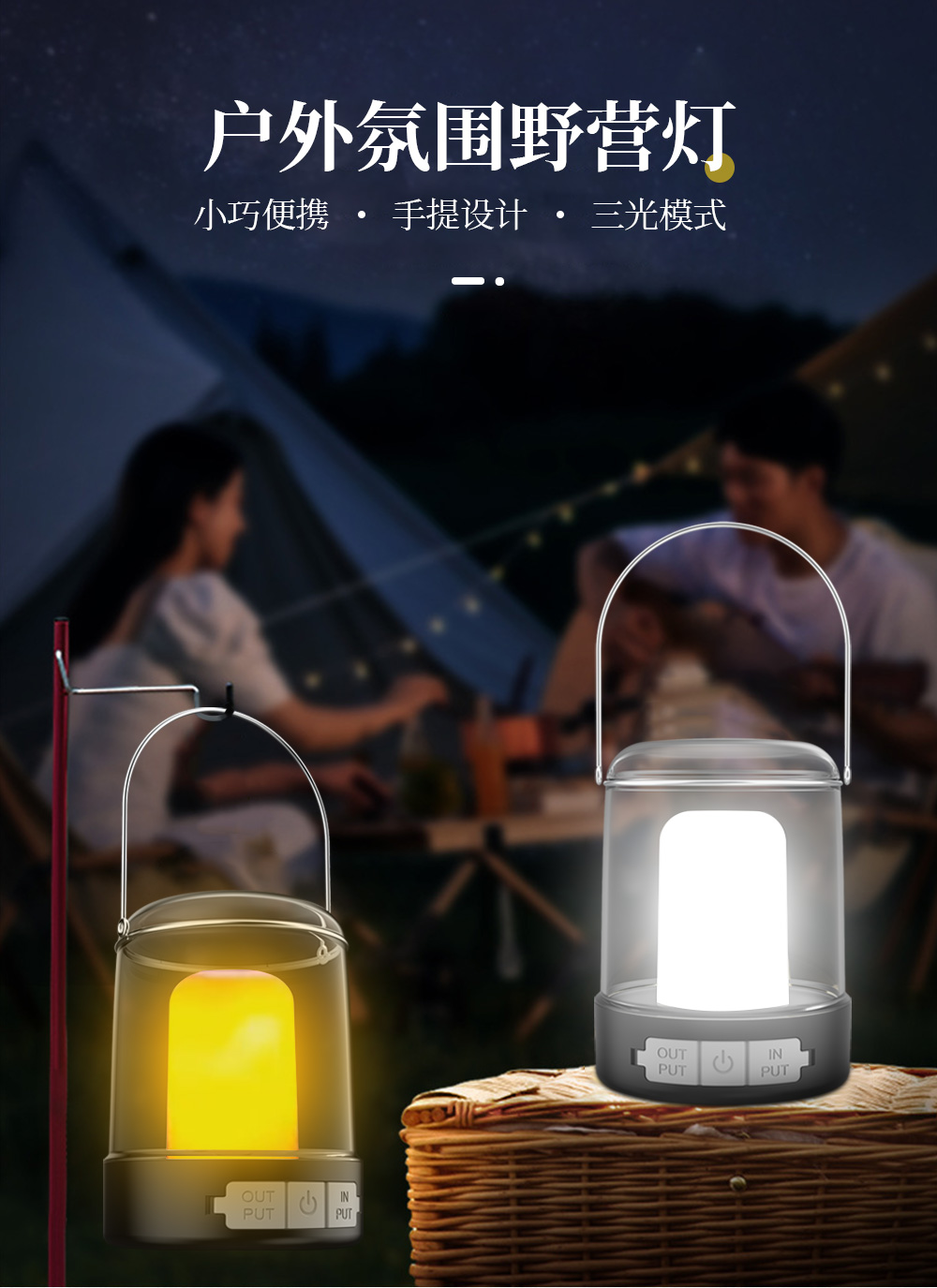 新款便携多功能户外露营灯室外仿真火焰手提灯野营帐篷氛围灯