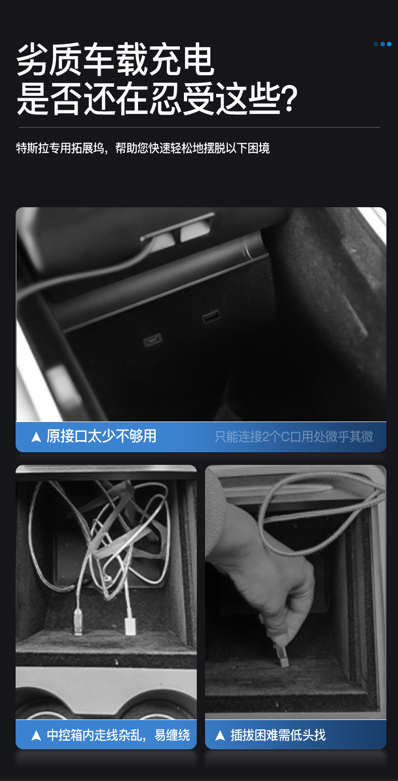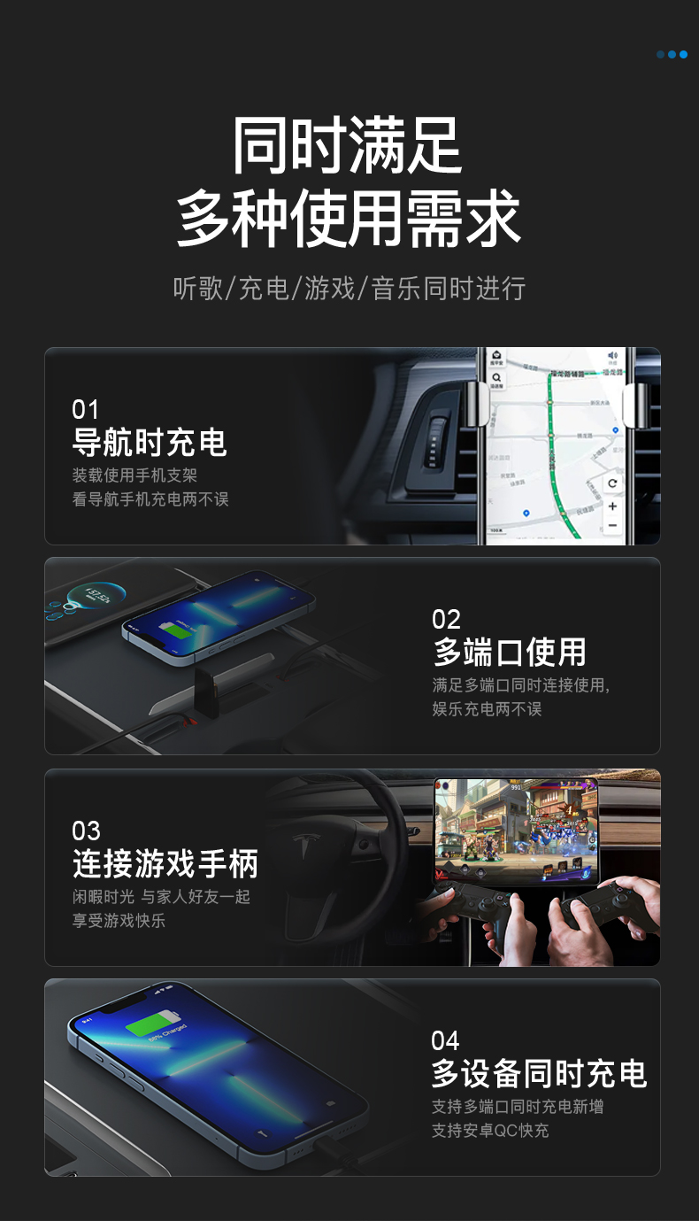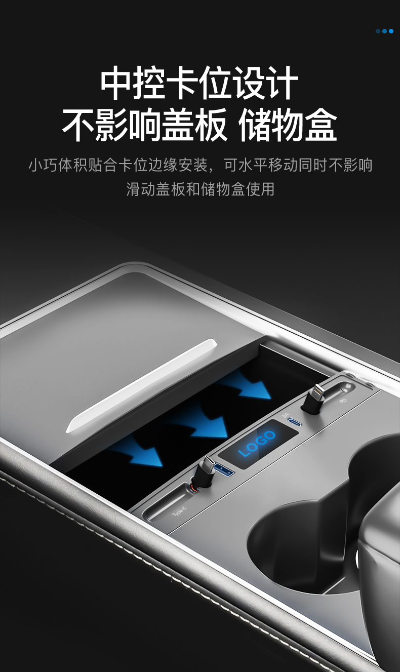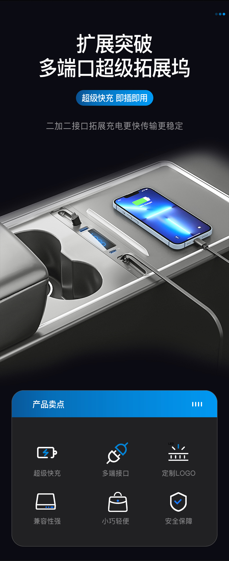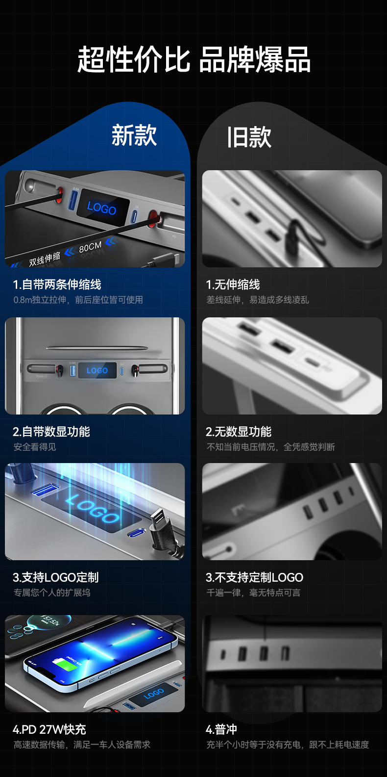 新款伸缩PD快充车充适用特斯拉拓展坞model3/Y中控USB拓展坞HUB