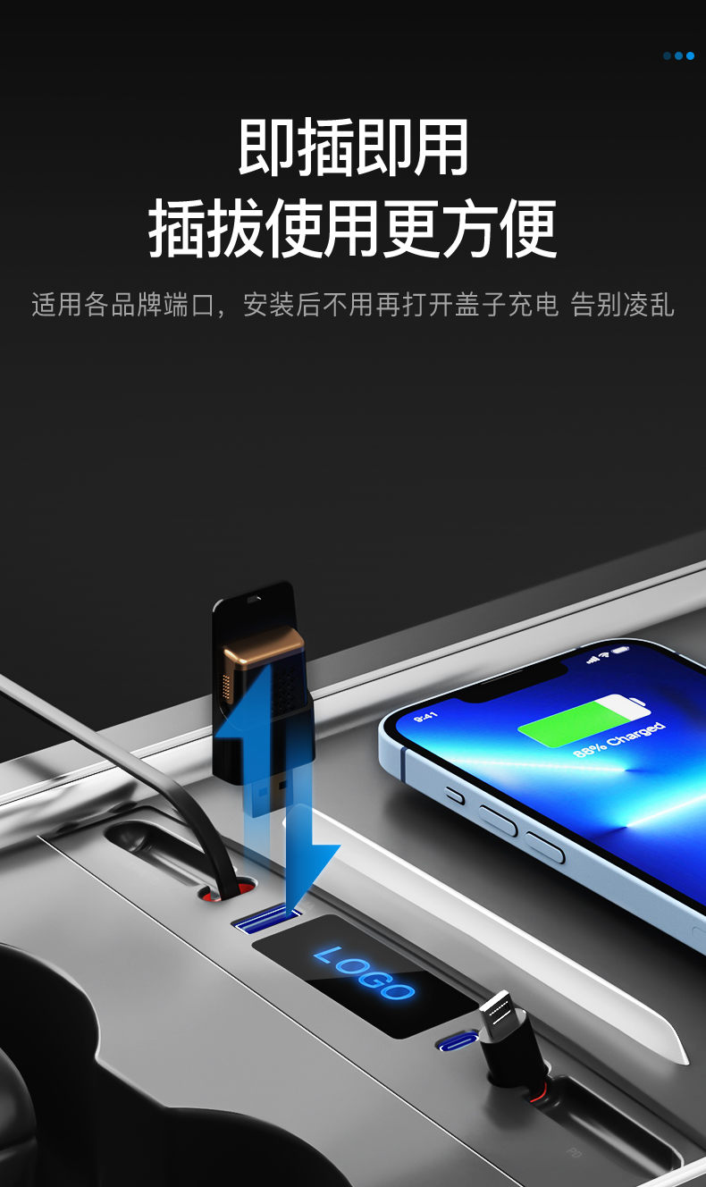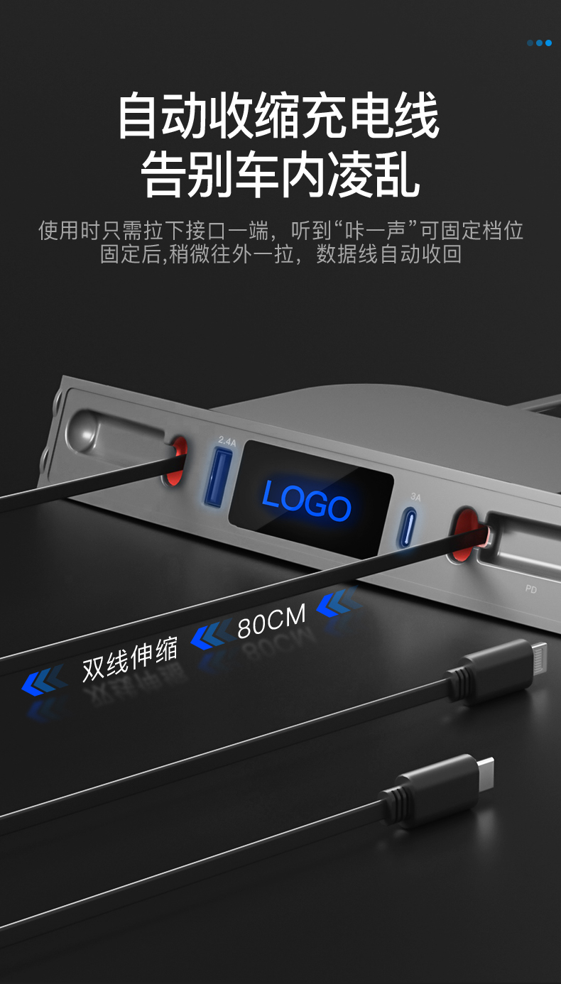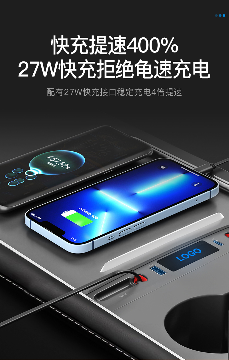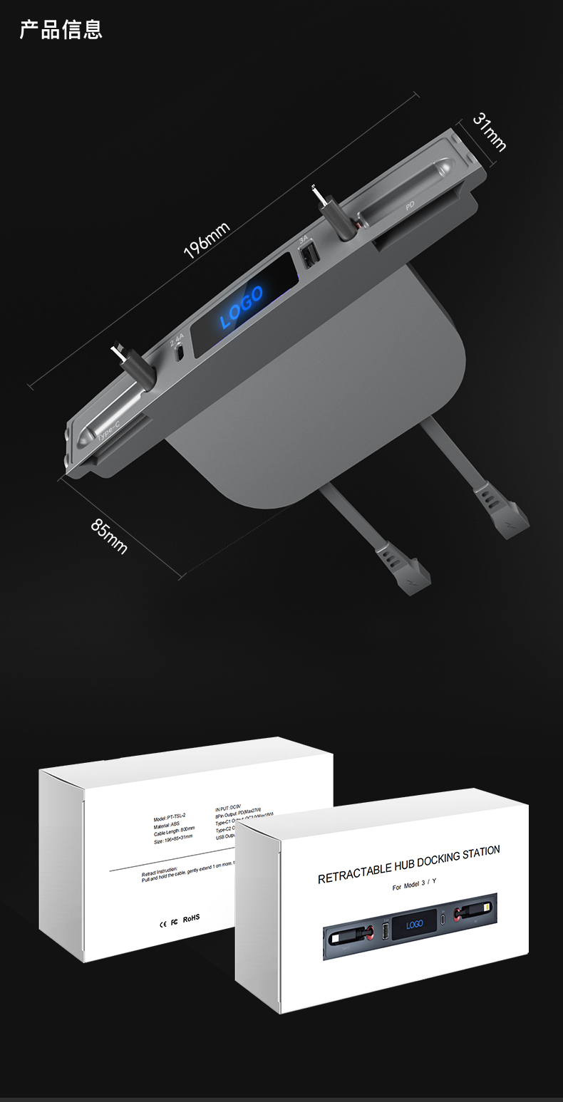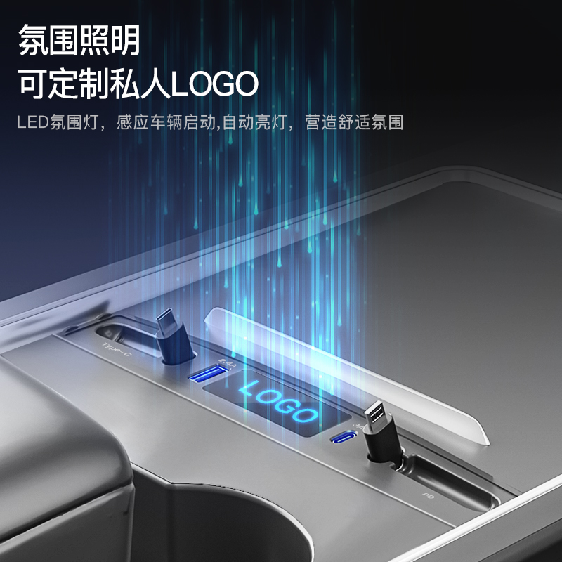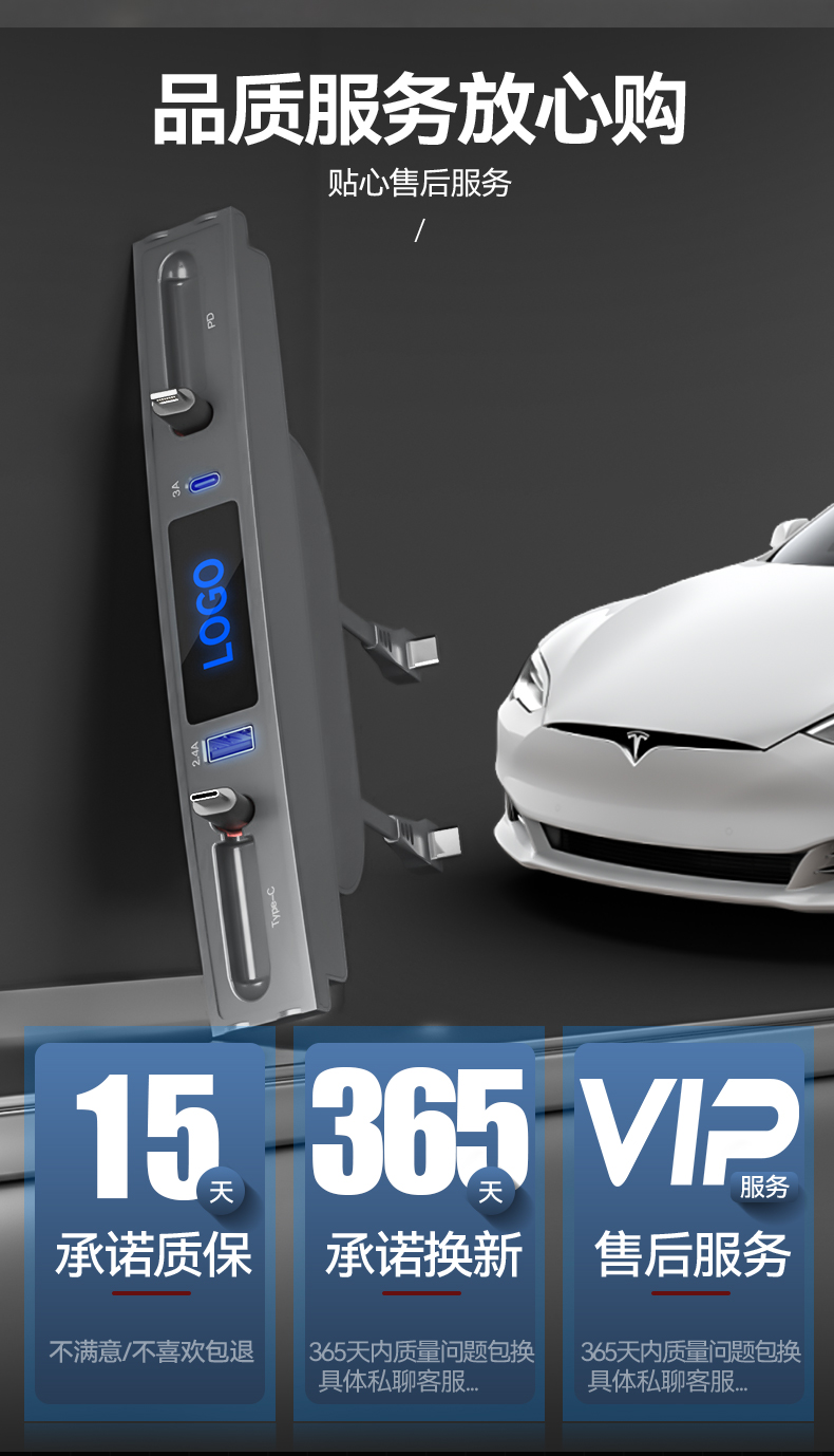 新款伸缩PD快充车充适用特斯拉拓展坞model3/Y中控USB拓展坞HUB