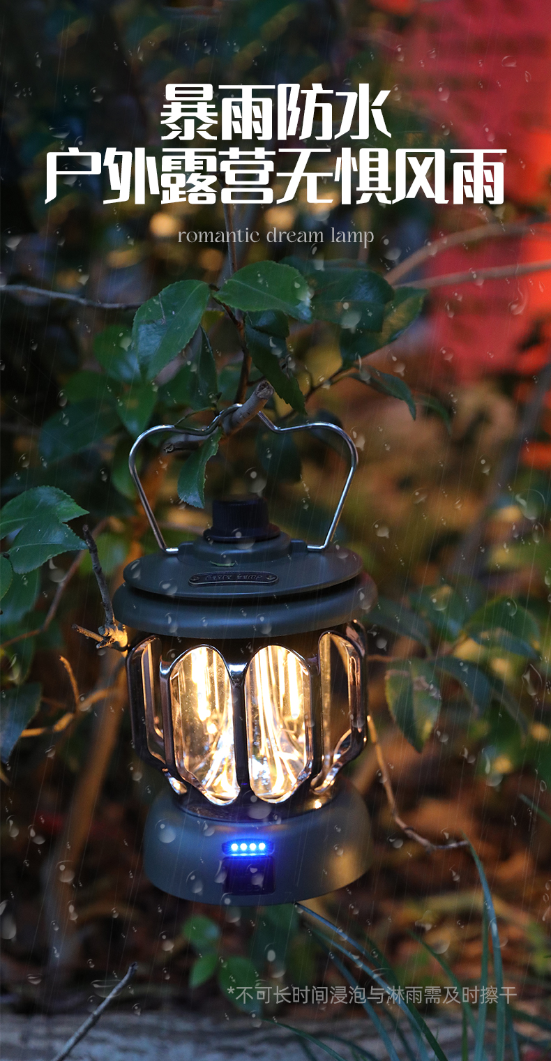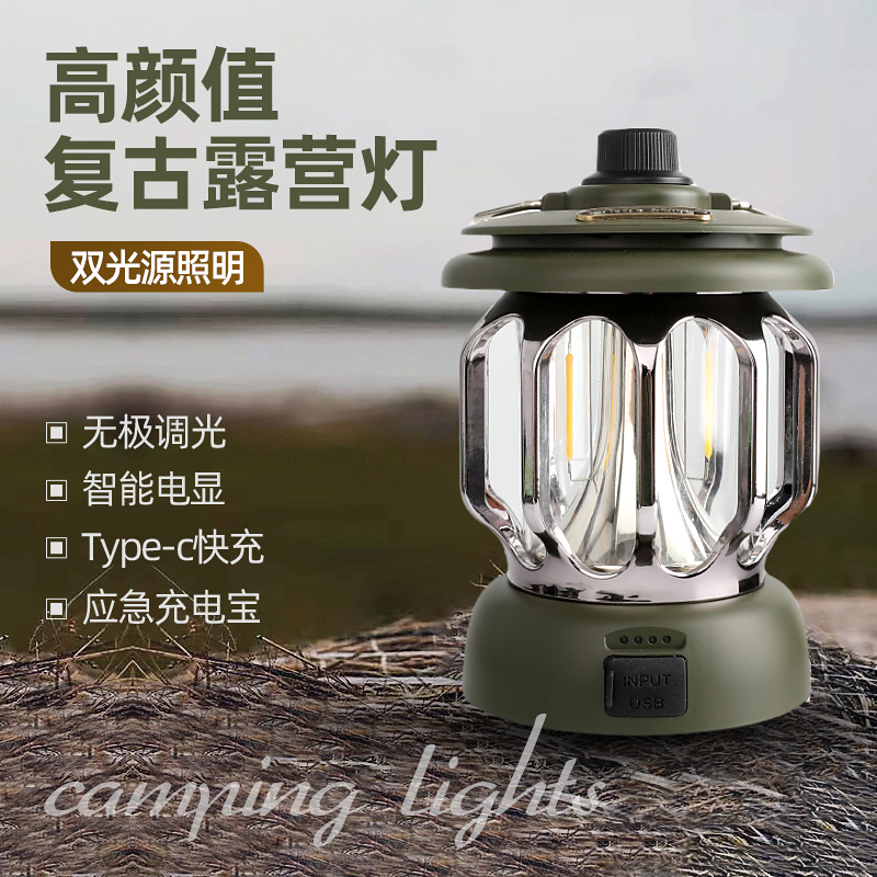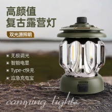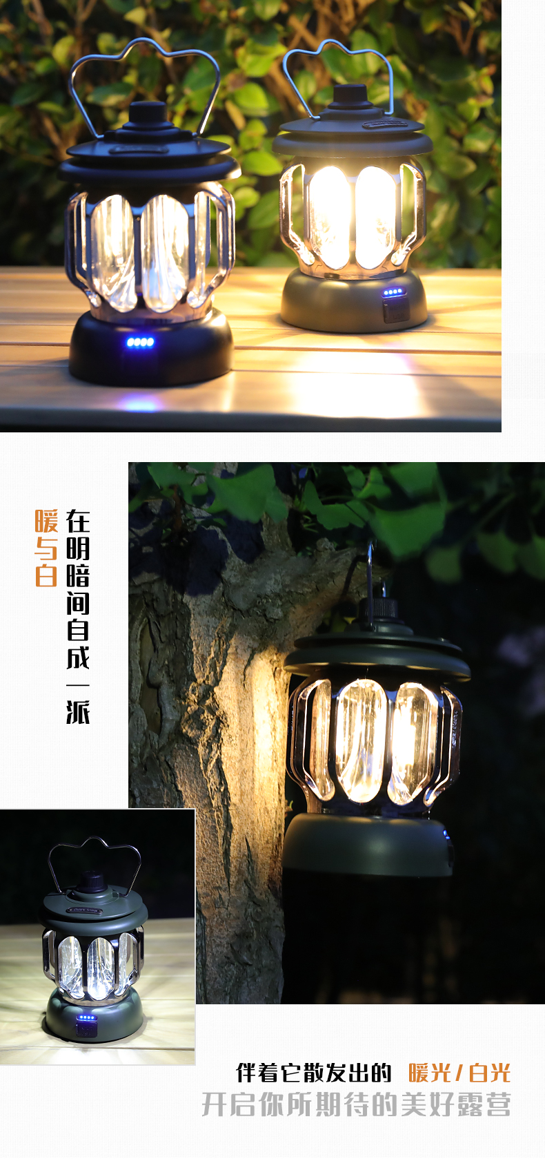 户外露营帐篷双光源野营地灯多功能手提复古马灯充电超亮氛围挂灯