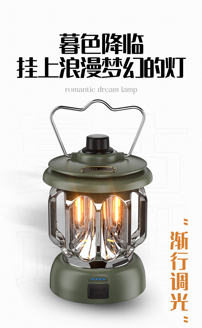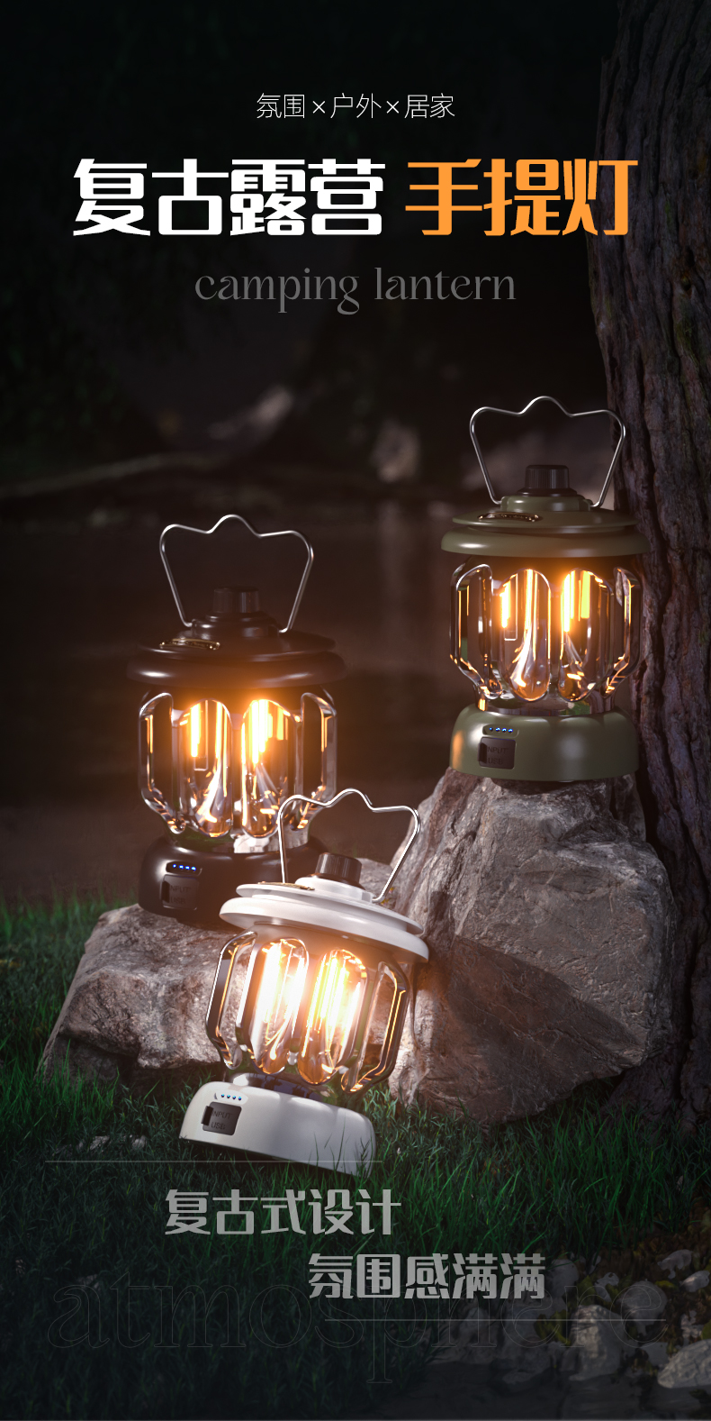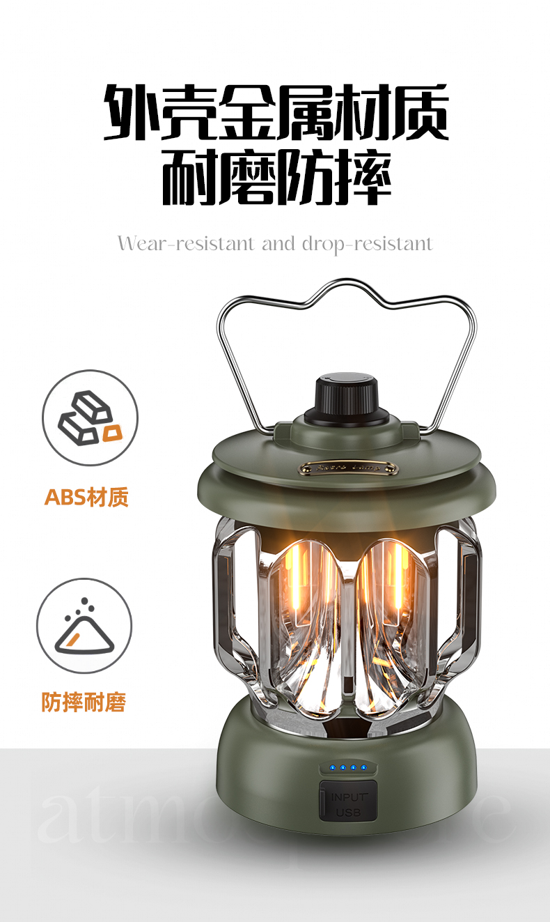 户外露营帐篷双光源野营地灯多功能手提复古马灯充电超亮氛围挂灯