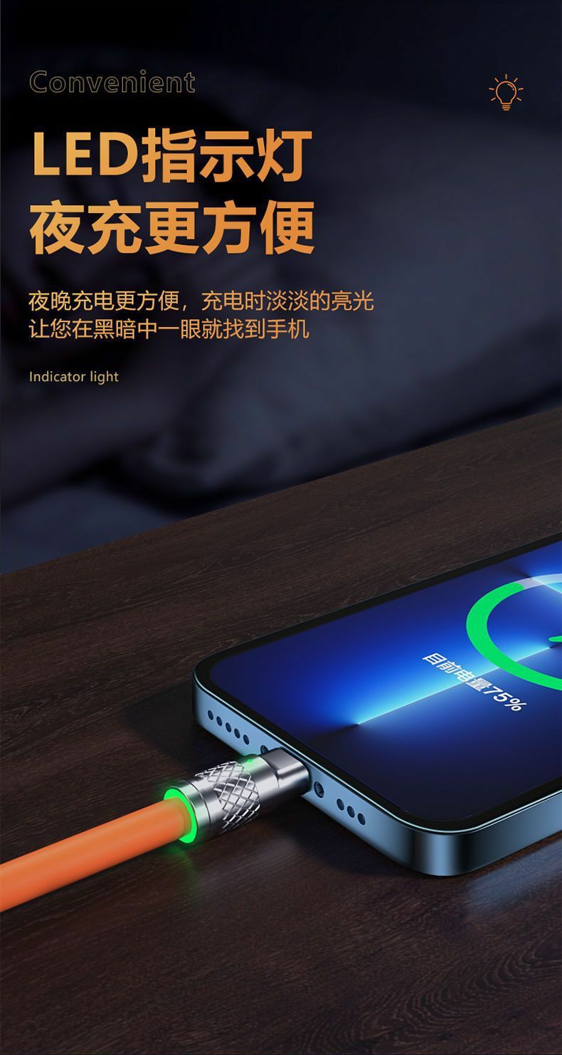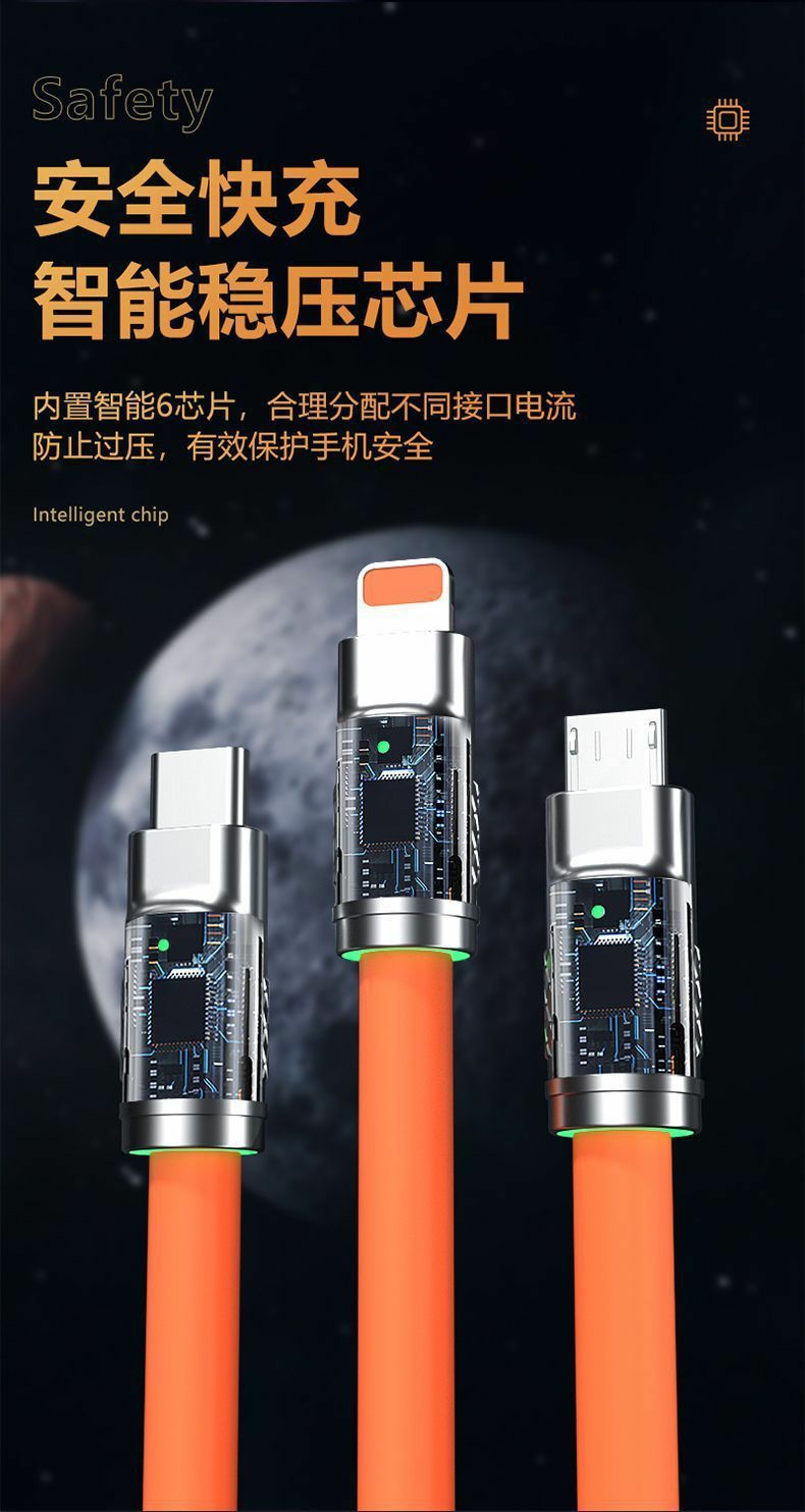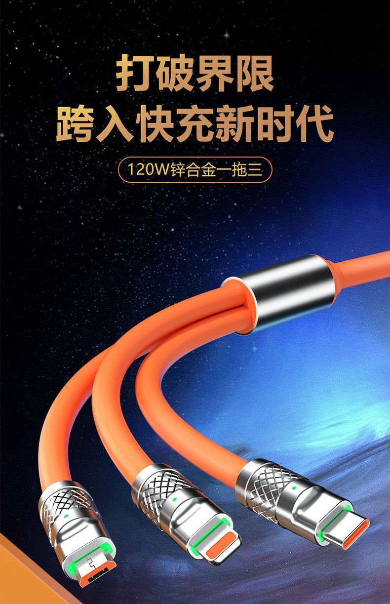 120w锌合金一拖三数据线硅胶线材数据线